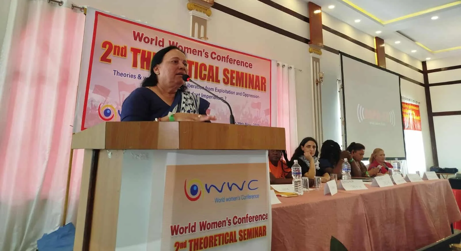 काठमाडौं,११ मंसिर । काठमाडौंको बुढानिलकण्ठ नगरपालिका–१० स्थित सुकुण्डा बेङ्क्वेटको हलमा अन्तराष्ट्रिय महिला सेमिनार जारी छ । कार्यक्रम आगामी १३ गतेसम्म चल्ने छ । आजको पहिलो सेसनमा ‘साम्राज्यवादलाई कसरी परास्त गर्ने’ विषयमा राजमोकि उपाध्यक्ष तथा प्रबक्त दुर्गा पौडेलले कार्यपत्र प्रस्तुत गर्नुभएको छ । सेमिनारको प्रत्येक ब्लकमा हरेक दिन एक एकवटा ब्लक, हरेक ब्लकमा पाँच,पाँचवटा कार्यपत्र प्रस्तुत हुने कार्यक्रम रहेको छ । प्रस्तोतालाई १० मिनेट र बाँकी दुईघण्टा सहभागीहरुलाई छलफलको लागि तीन मिनेटको समय हुने एशियन को–अर्डिनेर दुर्गा पौडेलले समाचारदाताहरुलाई जानकारी दिनुभएको छ । त्यस्तै आजै साँझ चारबजेदेखि छ बजेसम्म ‘गाजा सोलिडारिटी’ गाजाको ऐक्यवद्धताबारे गित, व्यानर, फोटो आदिको क्रमिक प्रदर्शन गरिने भएको छ । सबै संगठनहरुलाई एक,एकवटा कार्यक्रम प्रस्तुतगर्न पाउने व्यवस्था गरिको छ ।