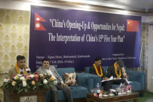 काठमाडौं,२४ माघ । चीनको तीव्र आर्थिक विकास, खुला नीति तथा दीर्घकालीन योजनाबाट नेपालले लिनसक्ने अवसरबारे हिजो एउटा छलफल कार्यक्रम सम्पन्न भएको छ । ‘चीनको खुलापन र नेपालका लागि अवसरहरु ः चीनको १५औँ पञ्चवर्षीय योजनाको व्याख्या’ विषयक उक्त कार्यक्रम आयोजना गरिएको हो । कार्यक्रममा वक्ताहरुले चीनको विकास दिनप्रतिदिन सुदृढ बन्दैगएको उल्लेख गर्दै नेपालले पनि चिनियाँ विकास मोडेल, नीतिनिर्माण प्रक्रिया, प्रविधि हस्तान्तरण र आर्थिक रणनीतिबाट सिक्दै आफ्ना विकासका लक्ष्य हाशिलगर्न सक्ने बताए ।